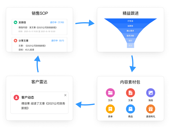 客戶雷達(dá):追蹤客戶行為軌跡,洞察客戶需求,及時(shí)通知銷售跟進(jìn);